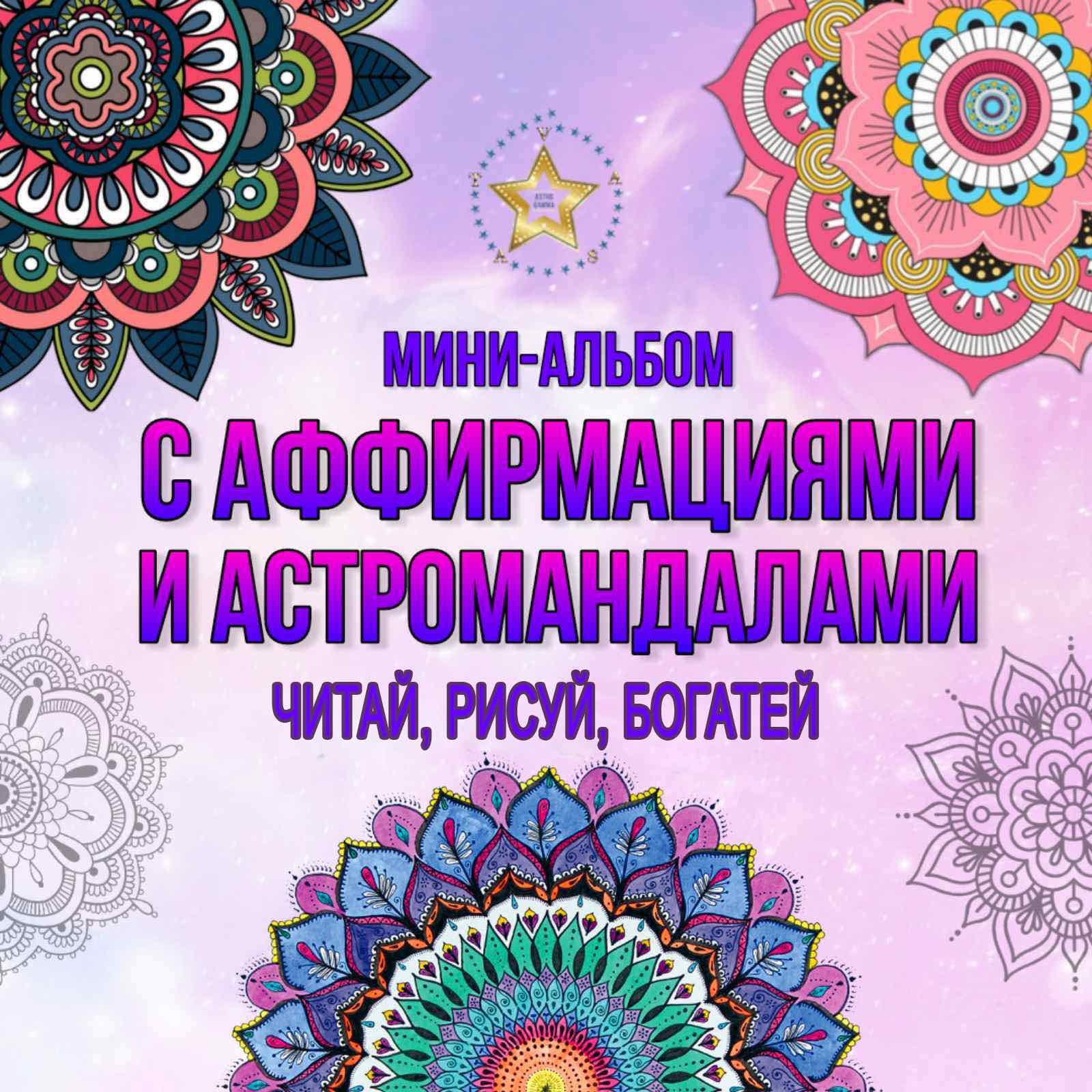 Альбом с астрологическими мандалами и аффирмациями по каждому знаку зодиака – 77 страниц.